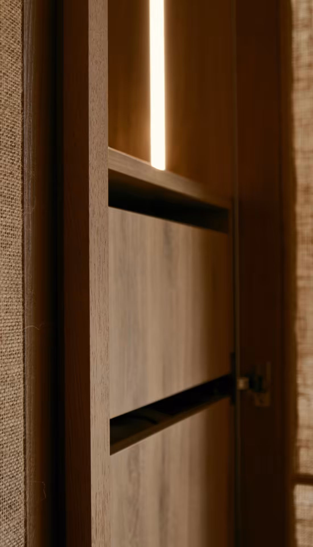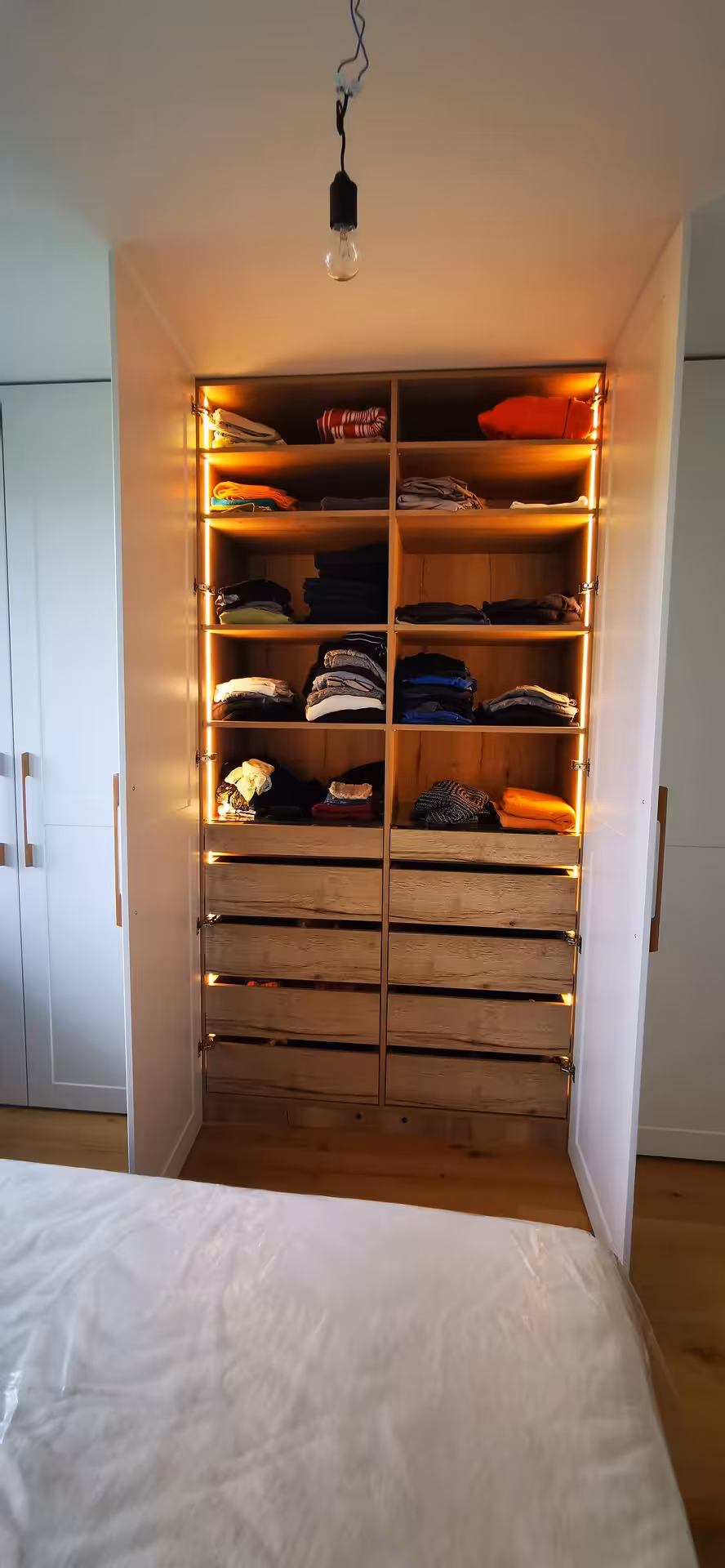 Maßgefertigte Kleiderschränke, schwebende Nachttische und perfekt eingepasste Betten sorgen für optische Ruhe und Klarheit. Mit warmen Hölzern und durchdachter Beleuchtung schaffen wir einen Rückzugsort, in dem Sie den Alltag einfach vor der Tür lassen.